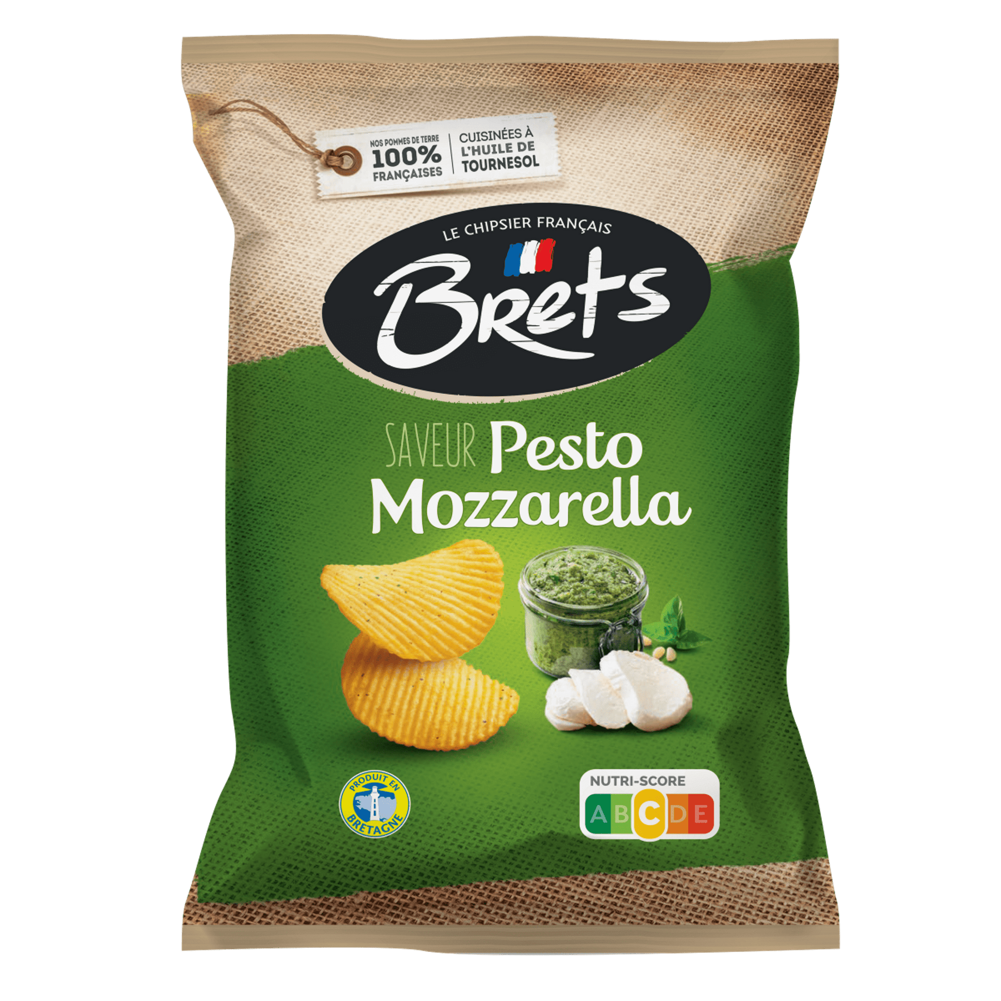 CHIPS BRETS CHIPS DE POMMES DE TERRE AU PESTO ET À LA MOZZARELLA